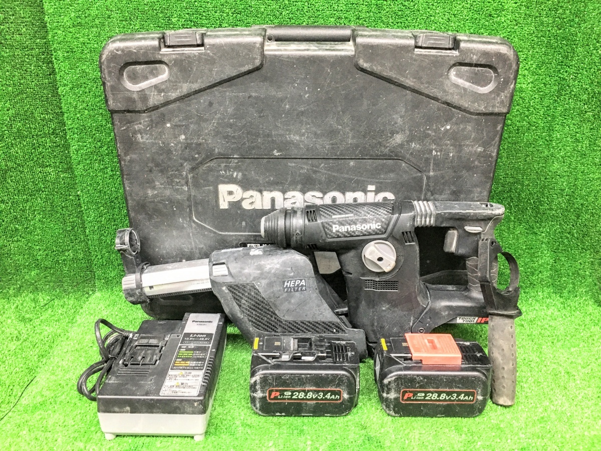 - 中古品 Panasonic パナソニック 28.8V 3.4Ah 充電ハンマードリル EZ7881PC2V-B ※本体+バッテリ2個+充電器+集塵システム+ケースセット
