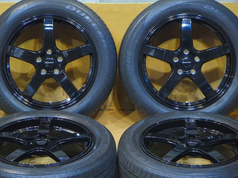 - 美品 溝あり【ヒューマンラインHS-09 ブリヂストン デューラーH/P 225/55R18】18インチ 7J+53 PCD114.3-5H SK系 フォレスター レイバック