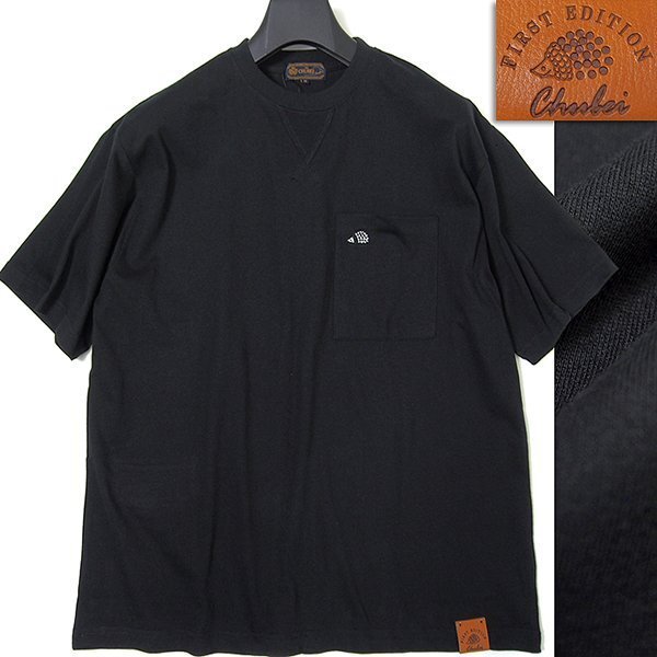 - 新品 チュウベイ コットン 刺繍ポケット 半袖 カットソー M 黒 【CH1442093_99_M】 CHUBEI 春夏 メンズ Tシャツ 丸首 ネームタグ