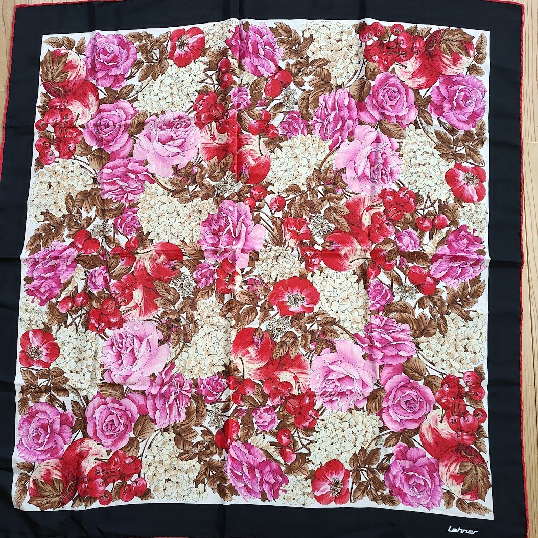 - 美品 スイス製 絹100% レーナー Lehner シルク100% スカーフ 花柄