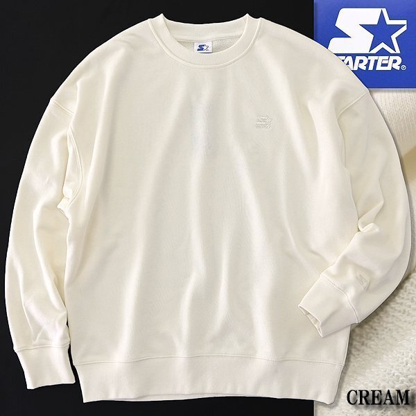 - 新品 STARTER スターター ロゴ 刺繍 裏毛 スウェット トレーナー M 【1-634094_CREAM_M】 アメリカ クルーネック 丸首 プルオーバー