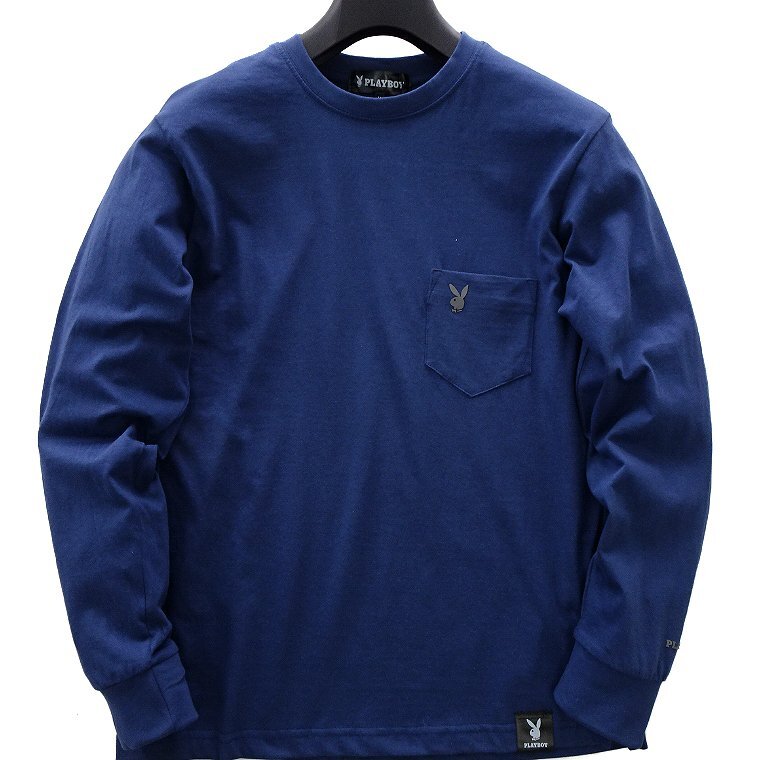 - 新品 プレイボーイ 25春夏 胸ポケット ロゴ 長袖 Tシャツ M 紺【PB1751022_78_M】 PLAYBOY コットン カットソー ロンT ロングスリーブ