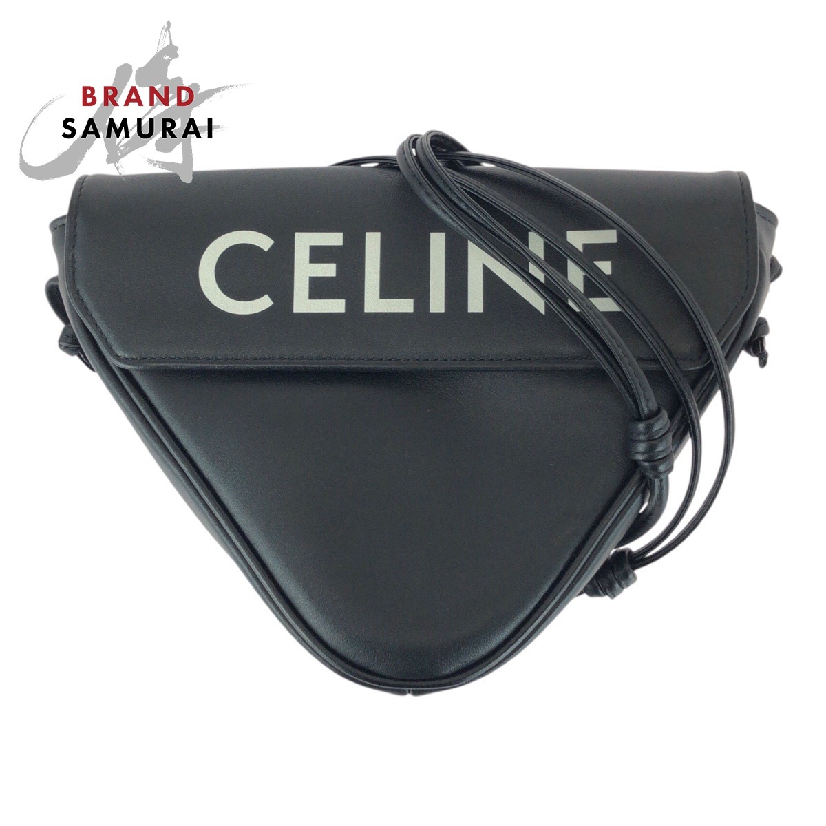 > 美品 CELINE セリーヌ トライアングル ロゴ ブラック 黒 ホワイト レザー 195903DCS ショルダーバッグ ポシェット レディース 505463