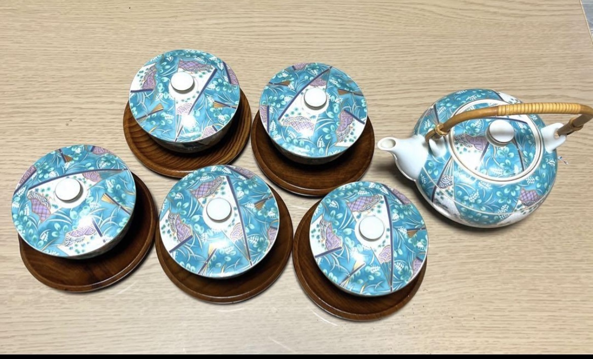 - 翔山 美濃焼 急須・お湯呑みセット 茶托 ブルーグリーン 和柄 翔山窯