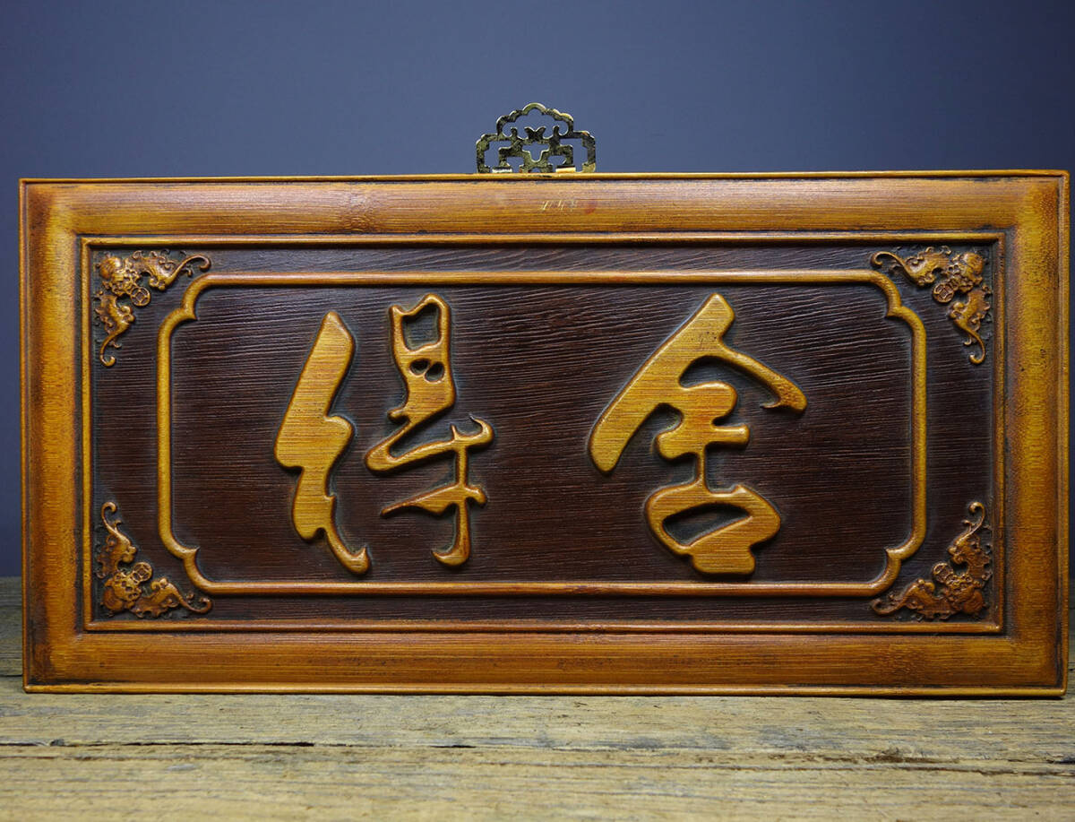 - 【蔵友館蔵品・竹黄製・細密彫・捨得・掛額・置物・文房賞物】・古董品・中国古玩・時代物・希少珍品・中国時代美術
