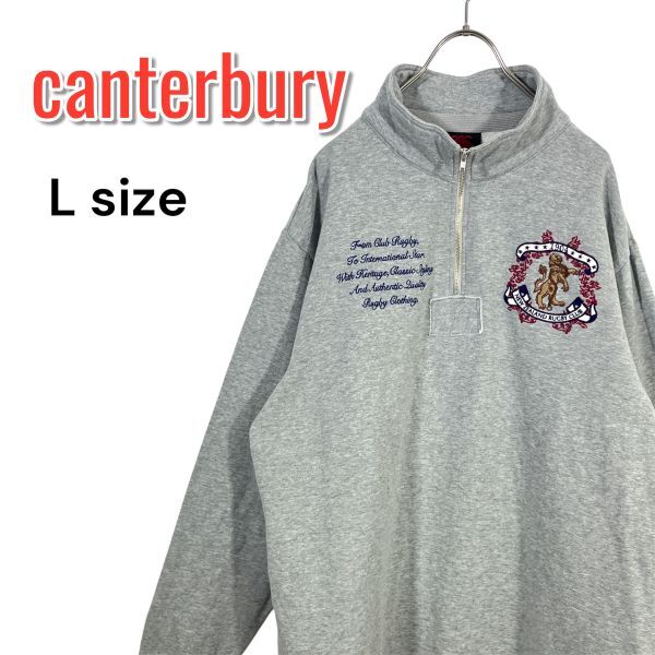 - カンタベリー ハーフジップ スウェットトレーナー Lサイズ グレー CANTERBURY 刺繍