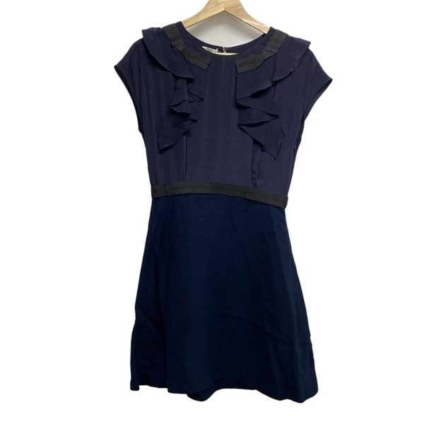 - ミュウミュウ miumiu サイズ38 S - ダークネイビー×黒 レディース ノースリーブ/ひざ丈/フリル 美品 ワンピース