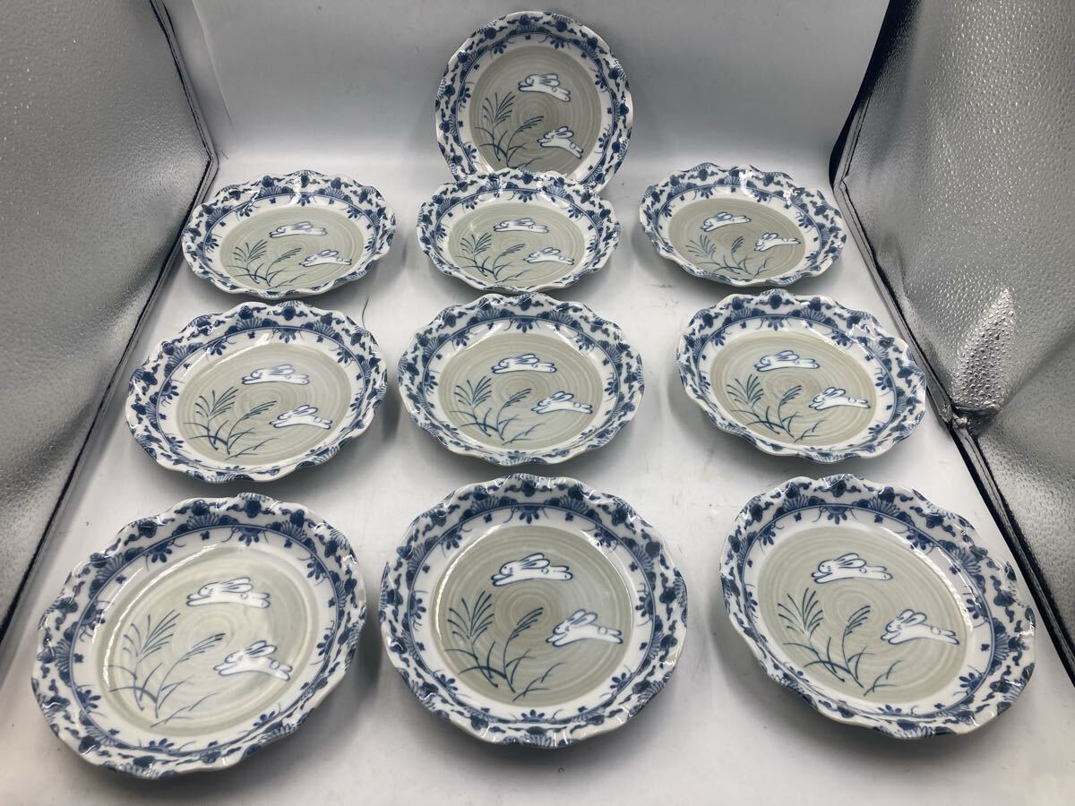 - 今回限り 10枚 須田菁華 写 うさぎとすすき 染付 日本料理 懐石料理 刺身皿 焼物皿 今回限り最後の在庫
