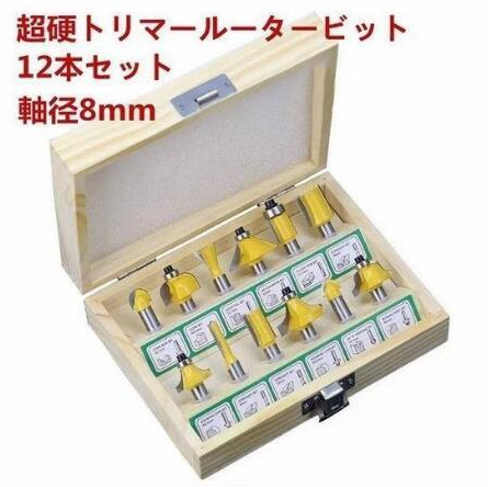 - 工具超硬 電動 トリマー ルーター ビット 面取り 溝切り 大工 軸径8mm 12本セット