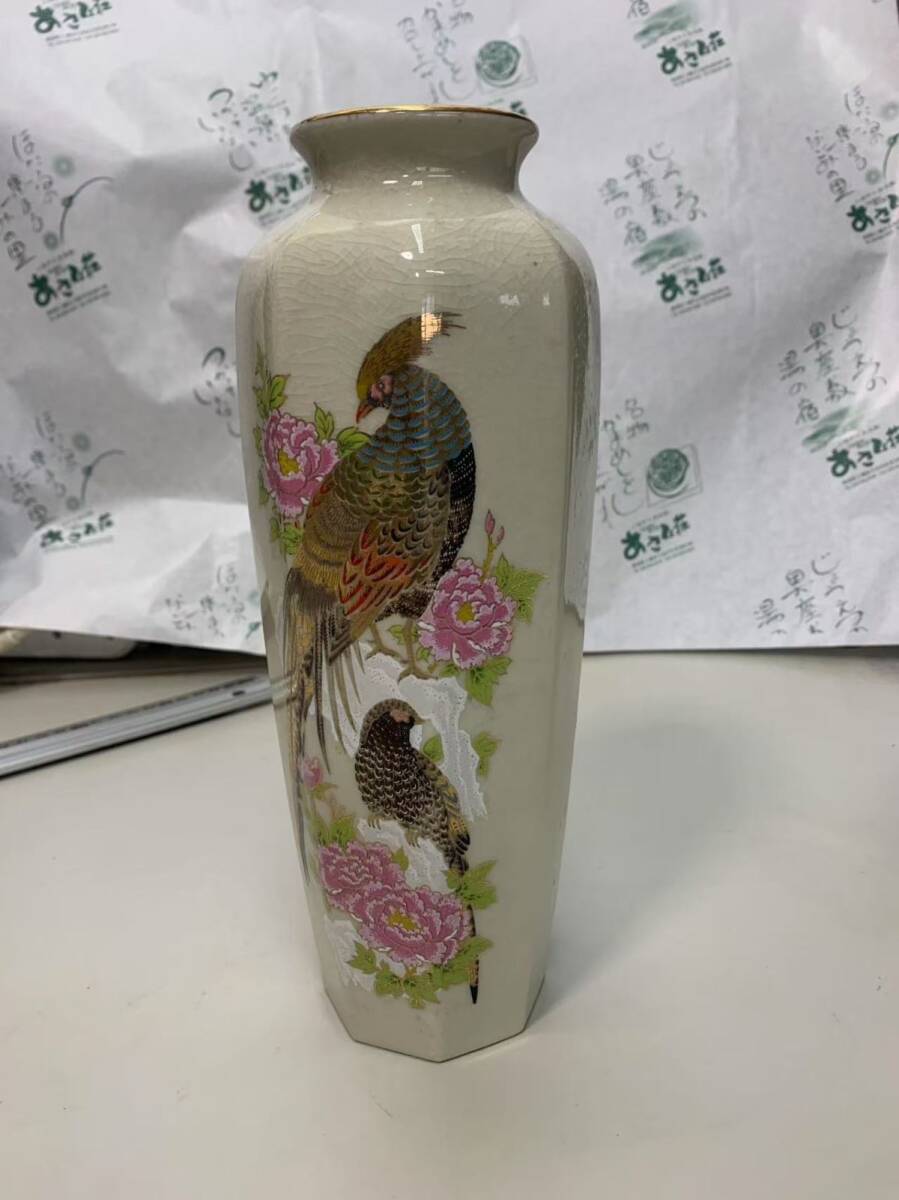 - S1-7-6→有田焼 高野窯 孔雀 花瓶 置物 中古 陶磁器 茶道具