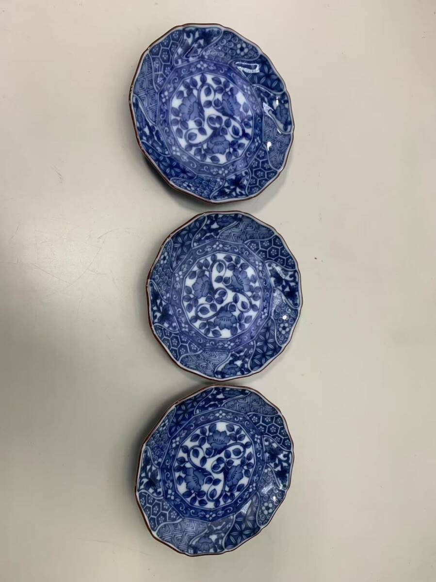 > G0503→時代物 和食器 龍峰窯 三洋陶器 ネジリ祥瑞 染付唐草 小皿3枚 中古 刺身皿 盛皿 和皿