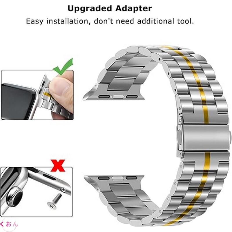 - シルバー / ゴールド 46mm スタイリッシュステンレス鋼 金属製 アップル ウォッチ Apple Watch series 11(2025)/ 10 バンド ベルト
