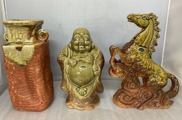 - 3F1076 信楽焼 馬 花瓶 仏 3個まとめ 置物 陶器 焼物 縁起物 レトロ 陶磁器