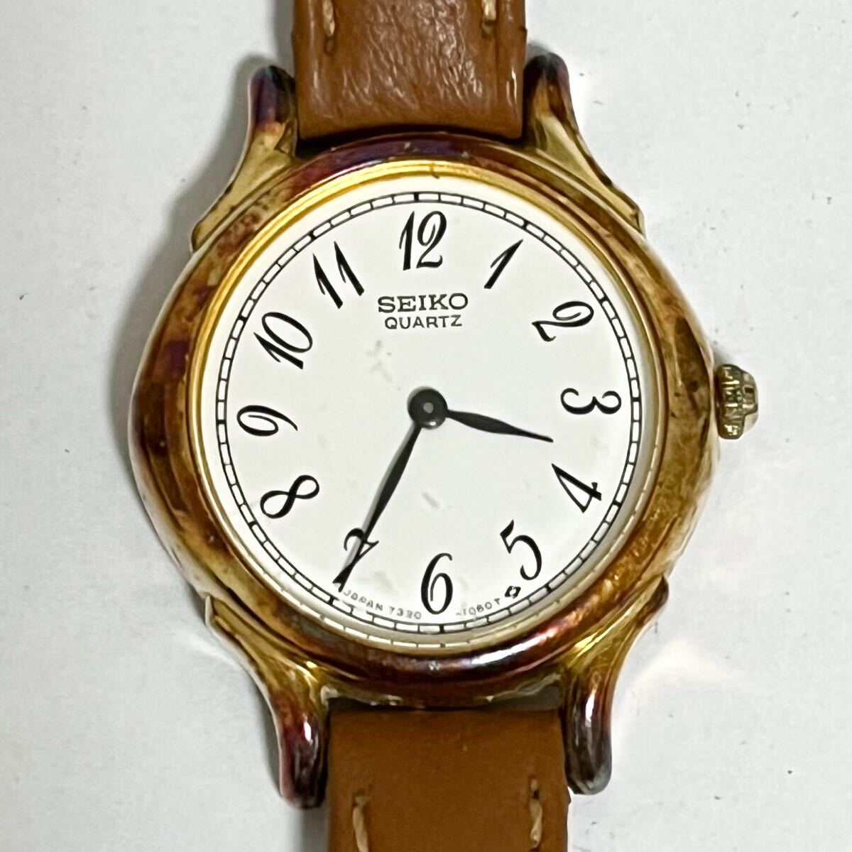 - 和851★ SEIKO セイコー クォーツ 腕時計 ウォッチ 2針 7320-6100 490378 ホワイト ゴールド レディース
