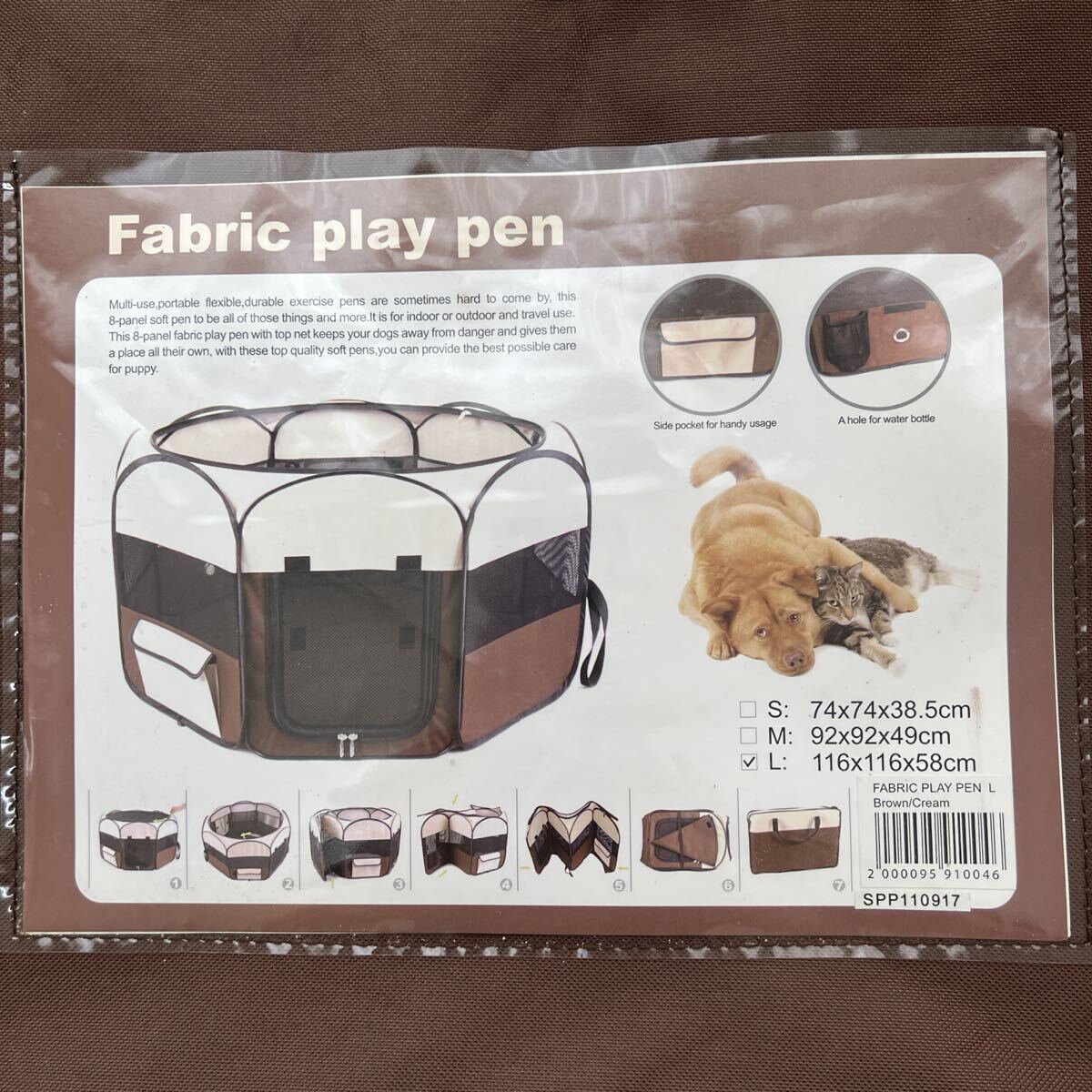 - Fabric play pen Lサイズ 犬猫兼用 ブラウン/クリーム