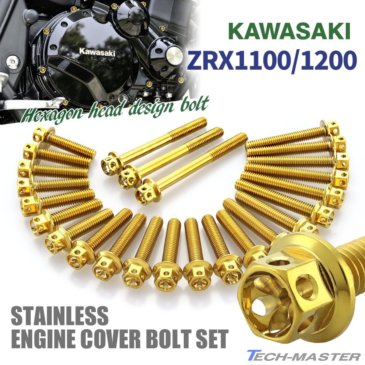 > ZRX1100 ZRX1200/R/S DAEG エンジンカバーボルト 25本セット ステンレス製 フラワーヘッド カワサキ車用 ゴールドカラー TB8112