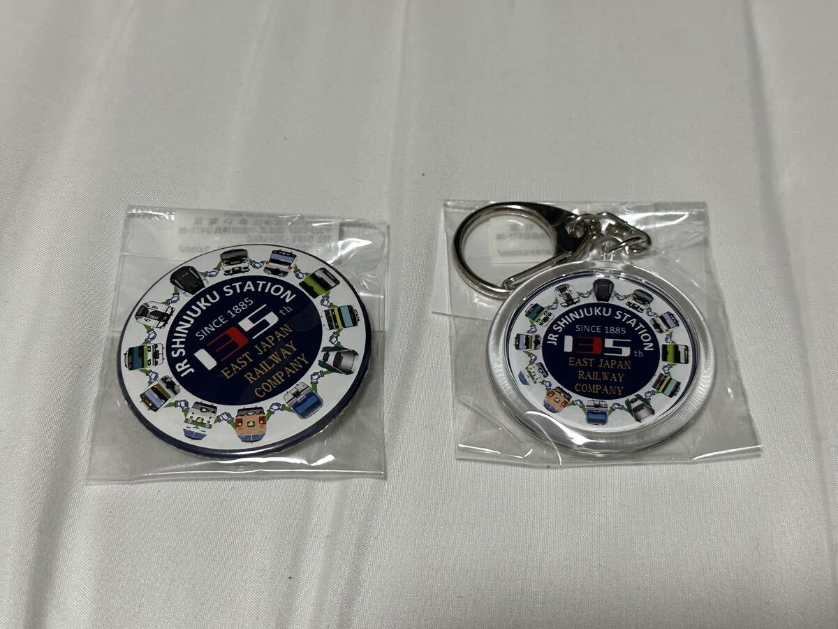 - 新宿駅開業135周年 キーホルダー 缶バッチセット