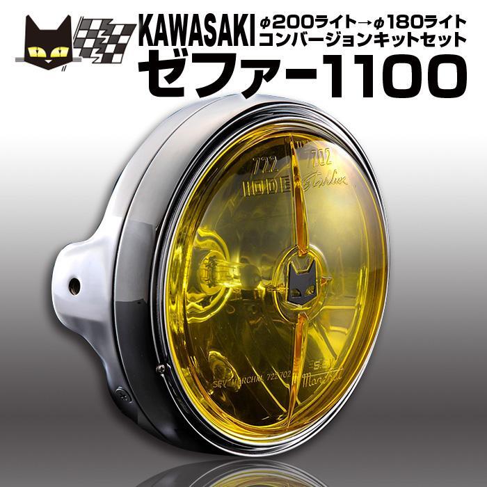 - カワサキ ゼファー1100 φ200ライトに装着 マーシャル722・702 イエローレンズ メッキケース 汎用フルキットセット 8416/6038