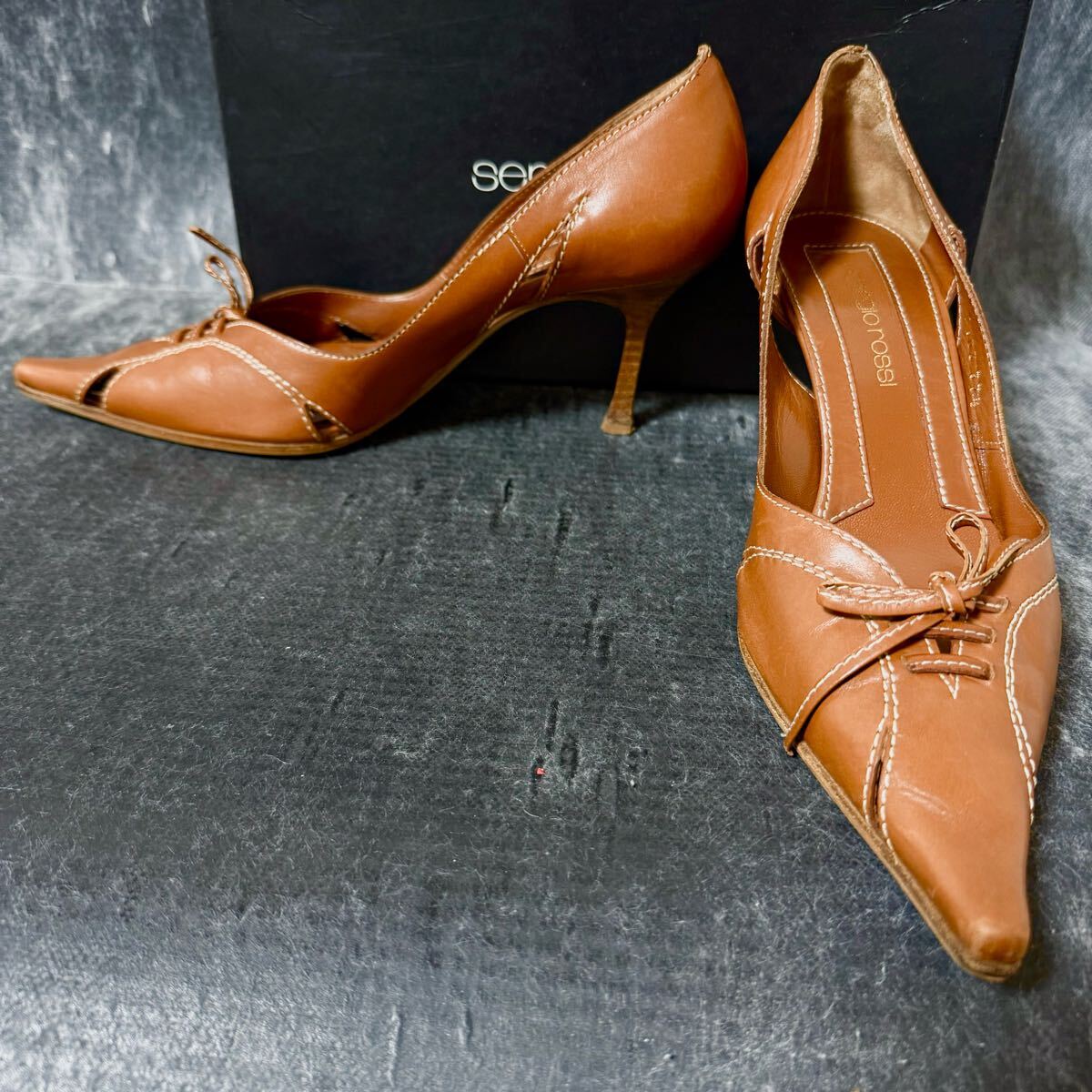 - sergio rossi セルジオロッシ レザーパンプス ヒールパンプス ポインテッドトゥ ブラウン 37 1/2 24.5cm相当 *ER