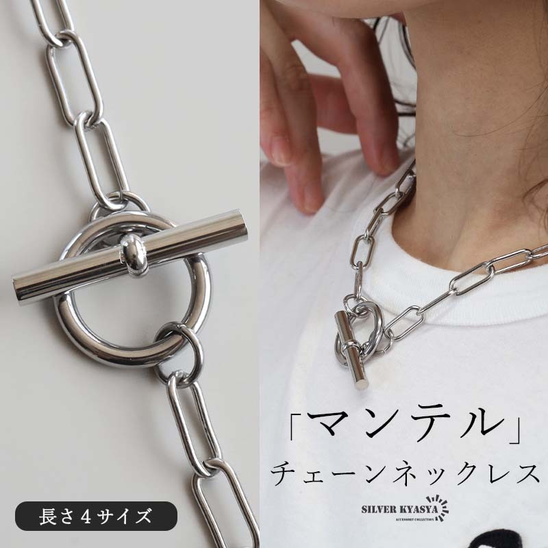- (60cm) ステンレス マンテルネックレス 長小豆 コマ長 チェーンネックレス シルバー レディース 女性 金アレ対応
