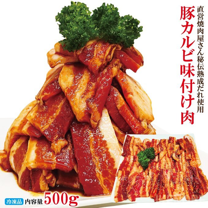 - 熟成だれ豚カルビ味付け肉 直営店焼肉屋さんの秘伝のたれ500g冷凍 かるび 牛肉に負けない味わい