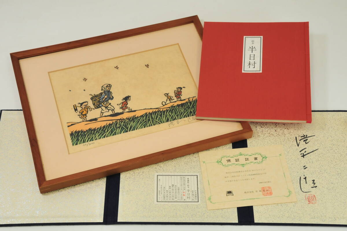 > 【真作】 滝平二郎 手摺版画(村の人々) 愛蔵版絵本(半日村) 限定400部 紙箱入 保証書 額装:38×47cm 03205028-2