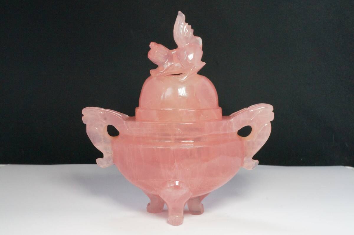 - 【即決特別価格!早い者勝ちです!】希少!35年前の貴重在庫!天然紅水晶 ローズクォーツ「香炉」彫刻研磨【甲府で彫刻研磨】348g