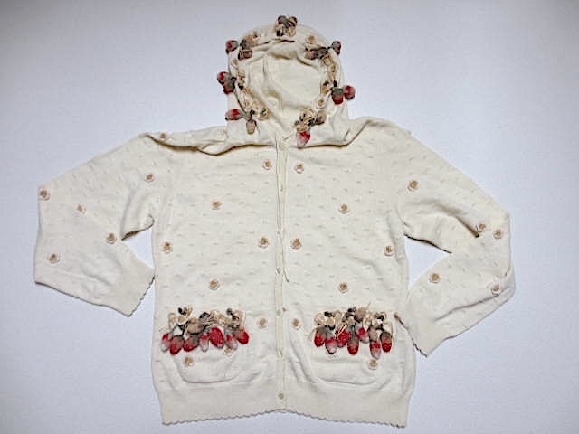 - ピンクハウス SNOW BERRY モチーフ付きフード付きカーディガン キナリ