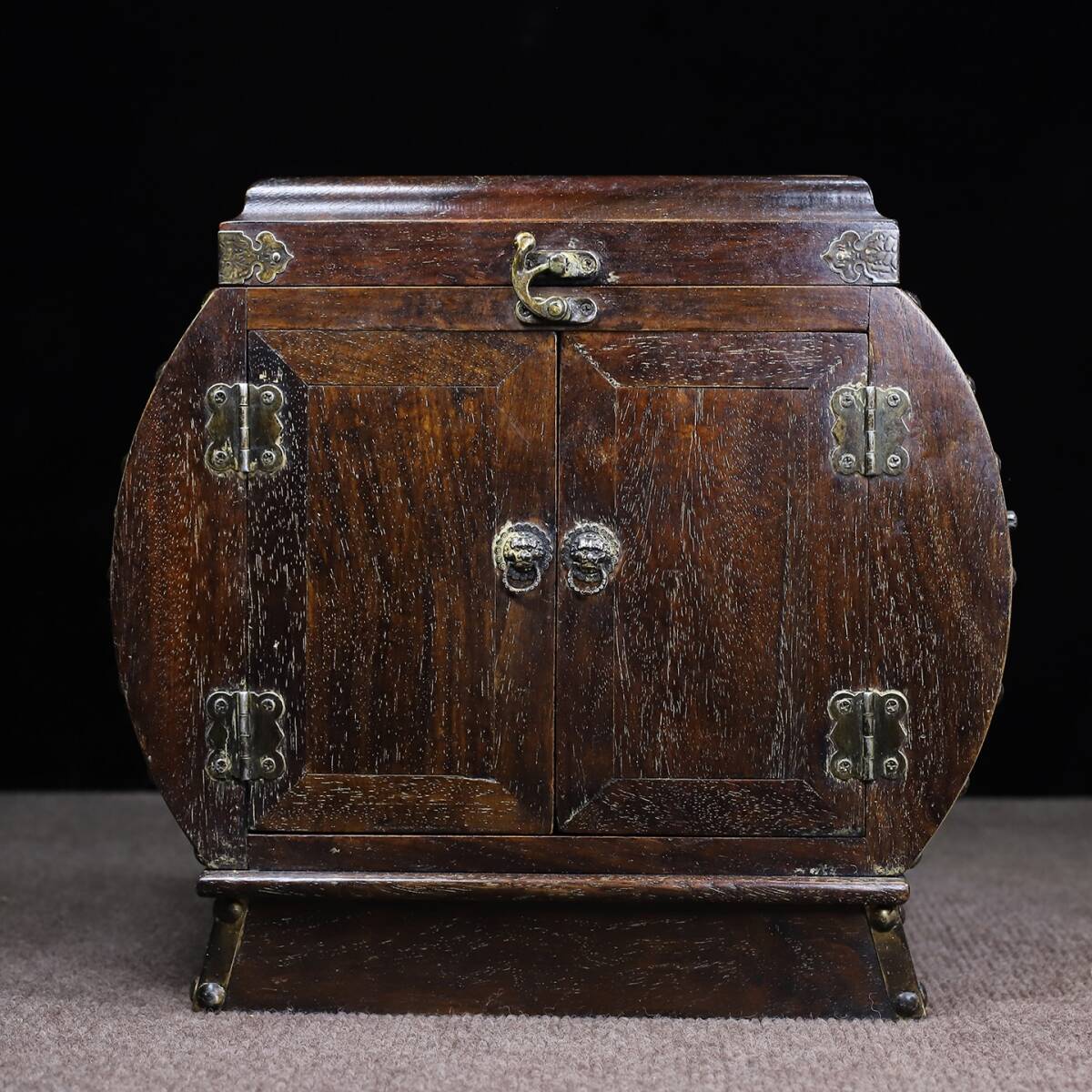 - ▽鴻▽ 花梨木製 細密彫 包銅 梳妝盒 置物 文房賞物 古賞物 古董品 時代物 稀少珍品 中国古玩 中国古美術