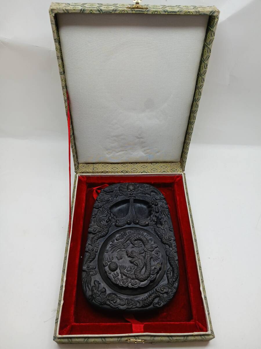 > 【中古品】中国 澄泥硯 龍宝瀧登 高級硯 文房四宝 龍彫刻 美術品 骨董 アンティーク 書画 水墨画 石製 コレクション 古美術 書道用具(ふ)