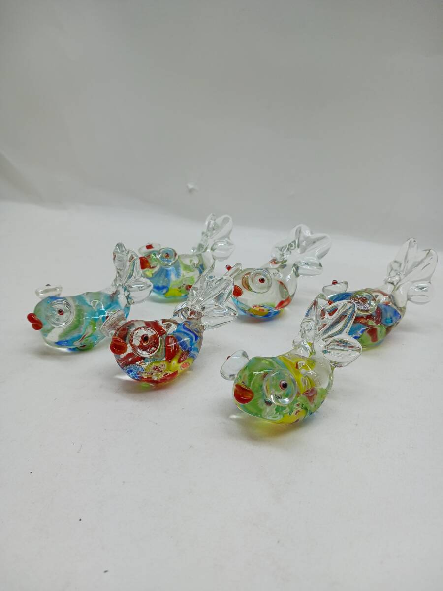 - 【未使用保管品】ガラス製 金魚 置物 ペーパーウェイト 中国工芸品 美術品 6個組 縁起物 開運 金運 風水 アンティーク インテリア(ふ)