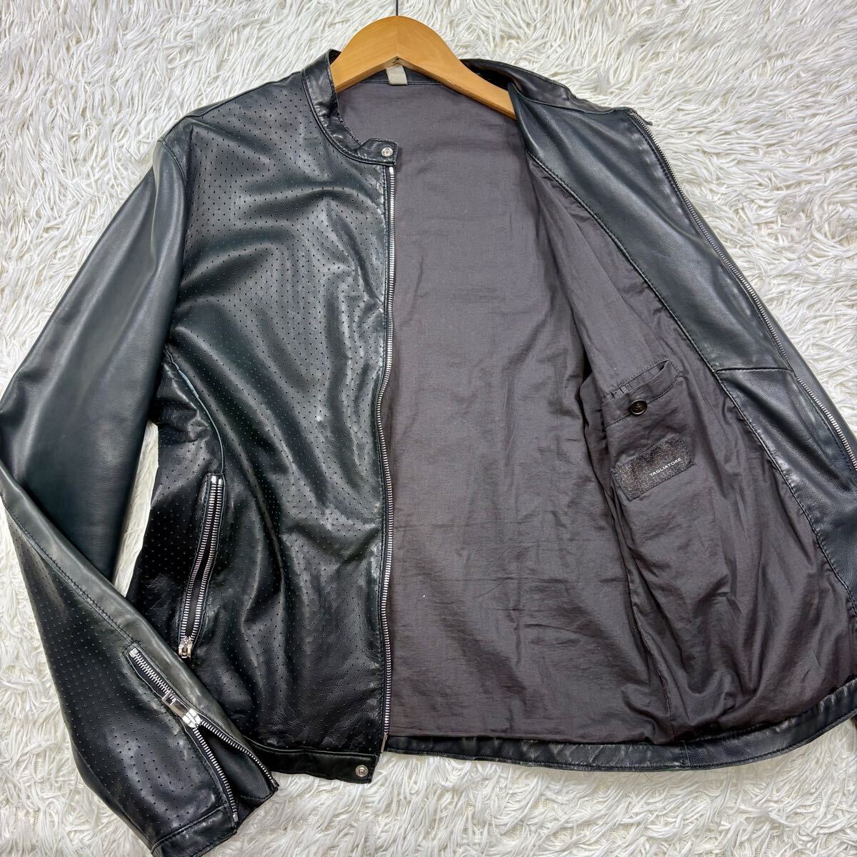 - ◎極美品/希少XL◎TAGLIATORE タリアトーレ OLIVER ラムレザー パンチング 羊革 ライダースジャケット ダブルジップ シープスキン LL 50 黒