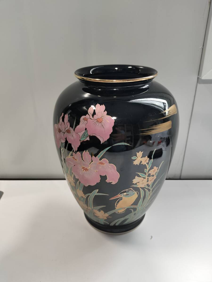 - 花瓶 九谷焼 黒 高さ:25cm 箱なし 0-1003-3y1m