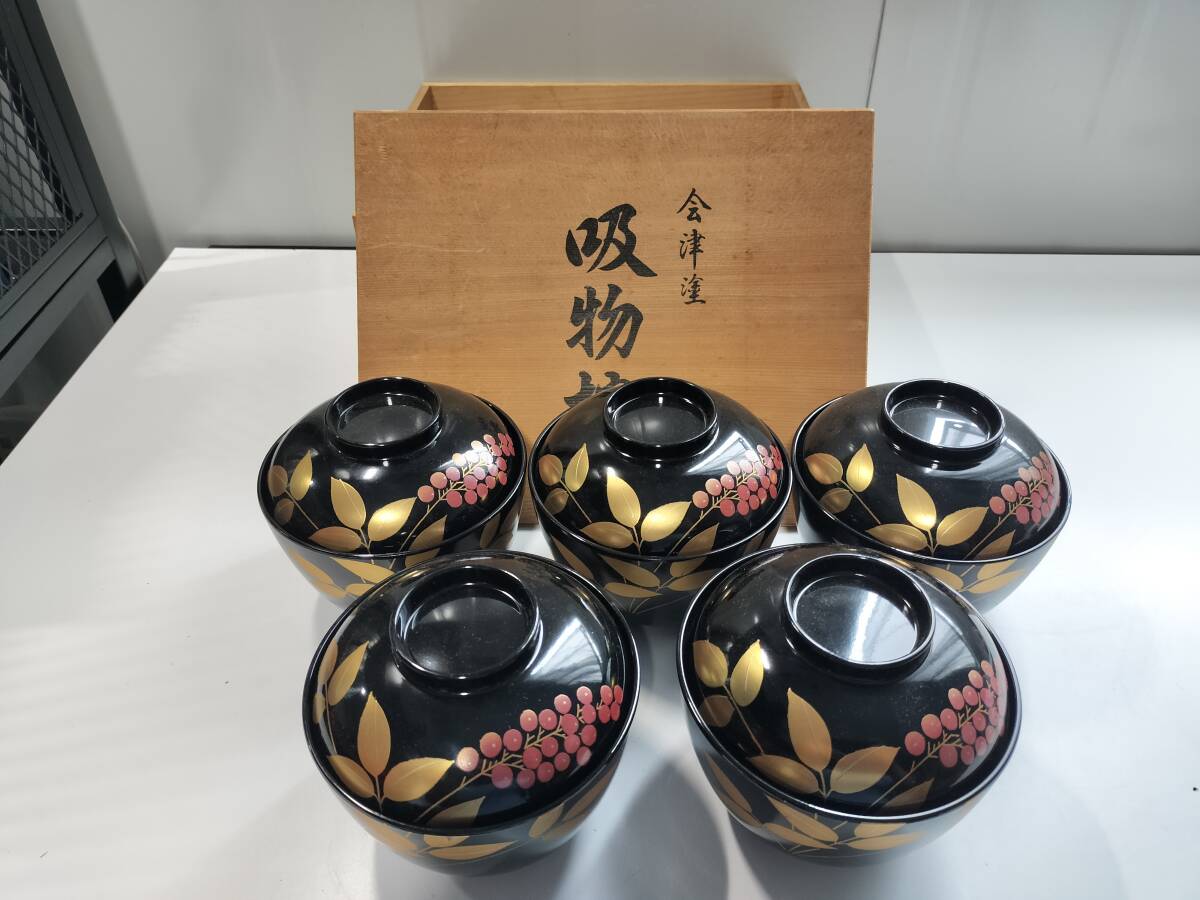 - 会津塗 吸い物椀 5セット 漆器 未使用品 0-1002-5y1m