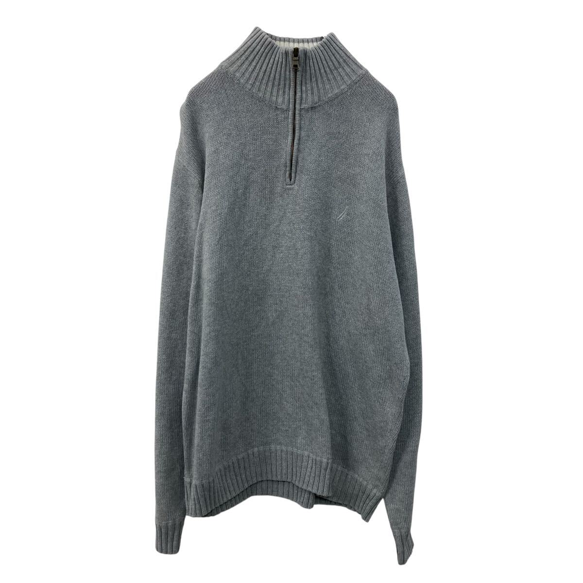 - a710-5173 NAUTCA コットンニット セーター L グレー ノーティカ ハーフジップ 刺繍ロゴ コットン100% シンプル 無地セーター 秋物