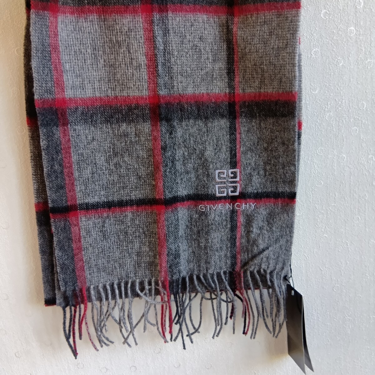 - GIVENCHY チェック柄マフラー ロゴ刺繍 グレー