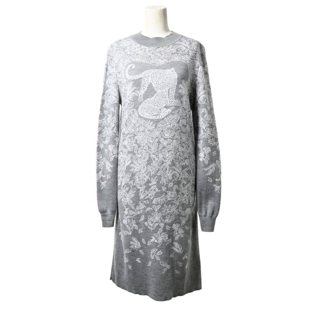 > HERMES Jungle Love カシミヤ シルク ニット ワンピース 38 グレー エルメス KL4BAUP293