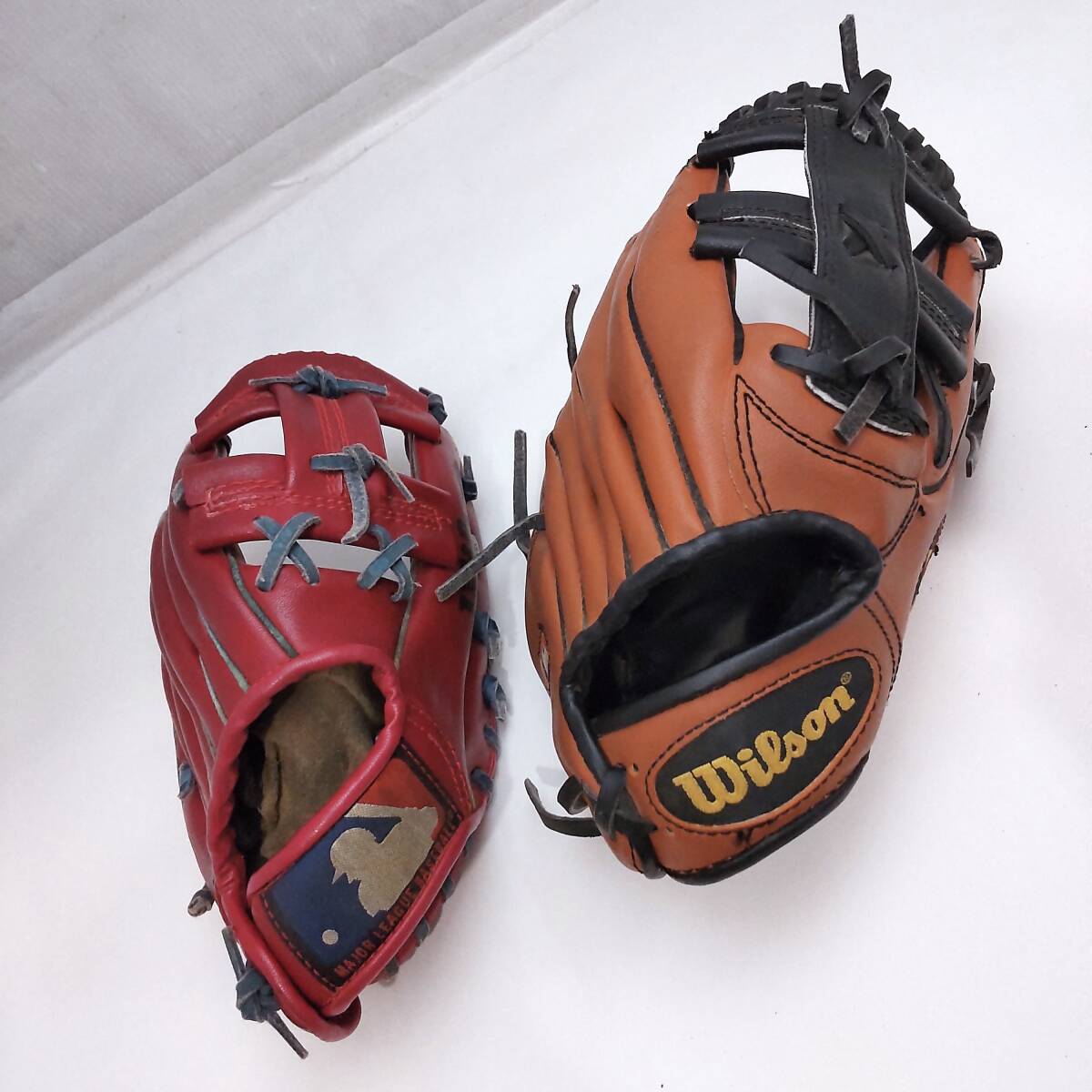 - Y100307■Wilson ウィルソン ジュニア軟式 グラブ 2点 ユースモデル AS01CV / RTGS06 指の長さ約14/17cm 野球 グローブ MLBマーク■