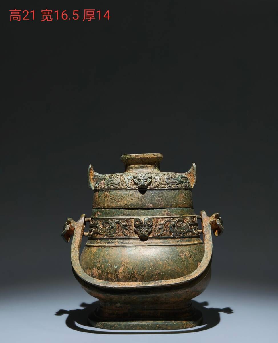 - 【超珍館蔵】商周 青銅製 鳥紋 提梁食盒 酒具 青銅器 置物 賞物 古賞物 古董品 古美術品 時代物 旧家蔵出 稀少珍蔵品