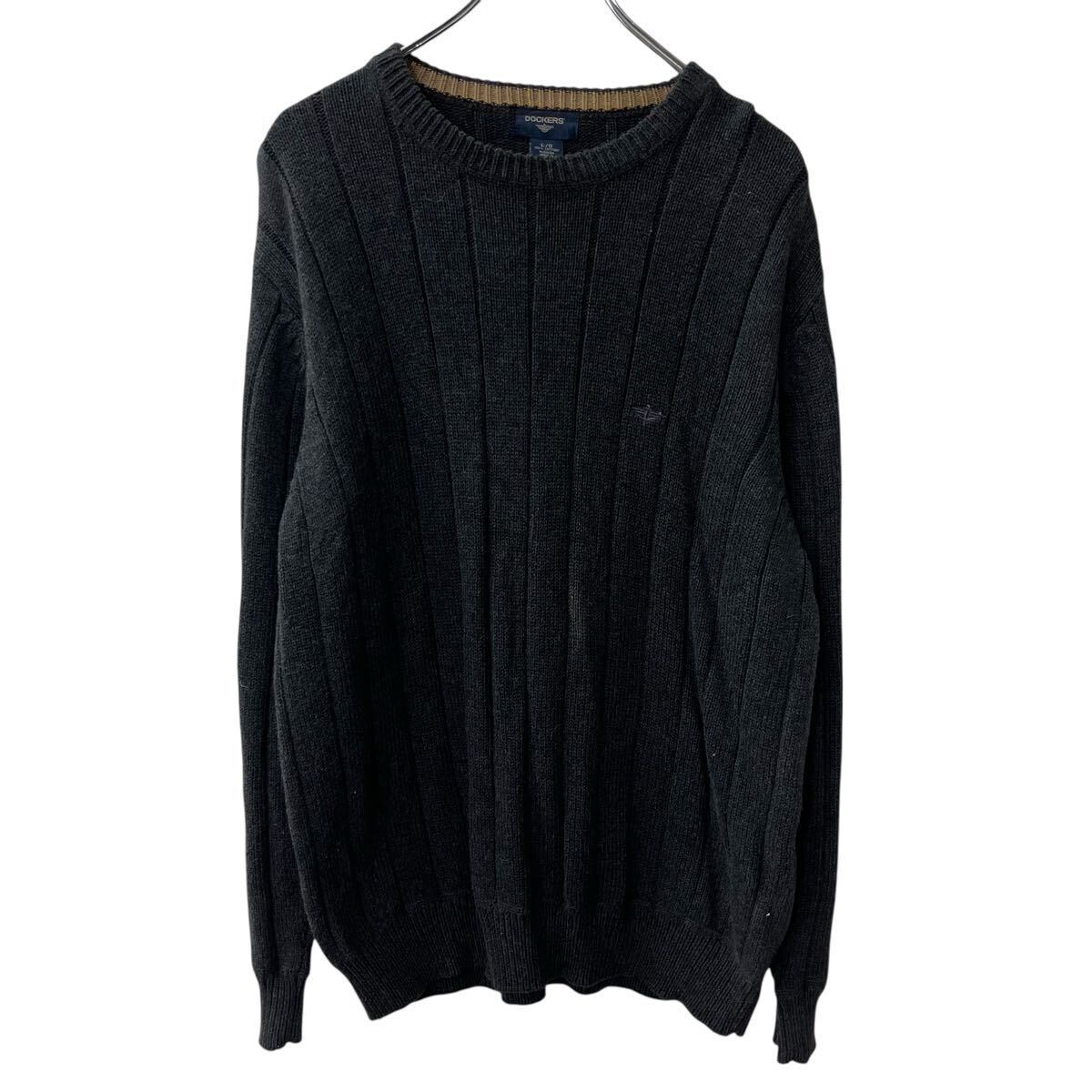 > a710-5195 DOCKERS コットンニット セーター L ダークグレー ドッカーズ コットン100% 無地 ロゴ プルオーバー シンプル 秋物