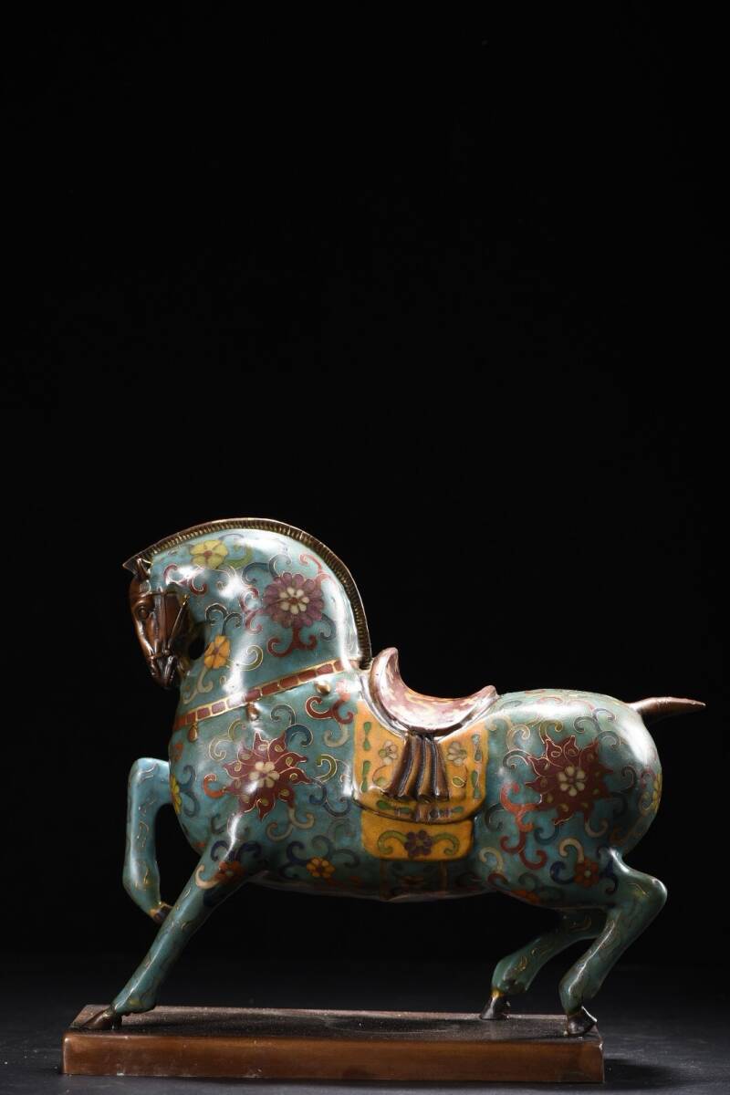 - 蔵友旧蔵出 銅製 景泰藍 琺瑯彩 馬到成功 馬尊 希少珍品 貴重品 置物 古賞物 密宗密教 供養品 仏教美術品