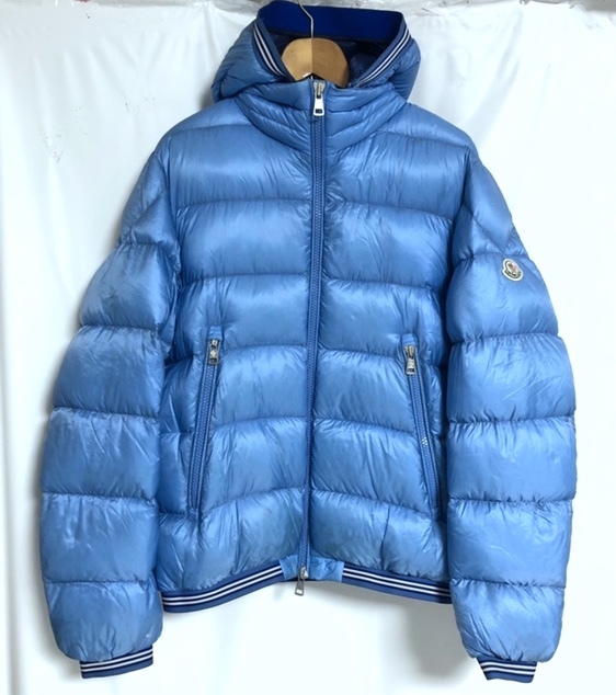 - ☆二点落札で送料無料!M048 MONCLER モンクレール JEANBART フード取り外し可 ダウンジャケット ライトブルー 3 メンズ L-XL アウター