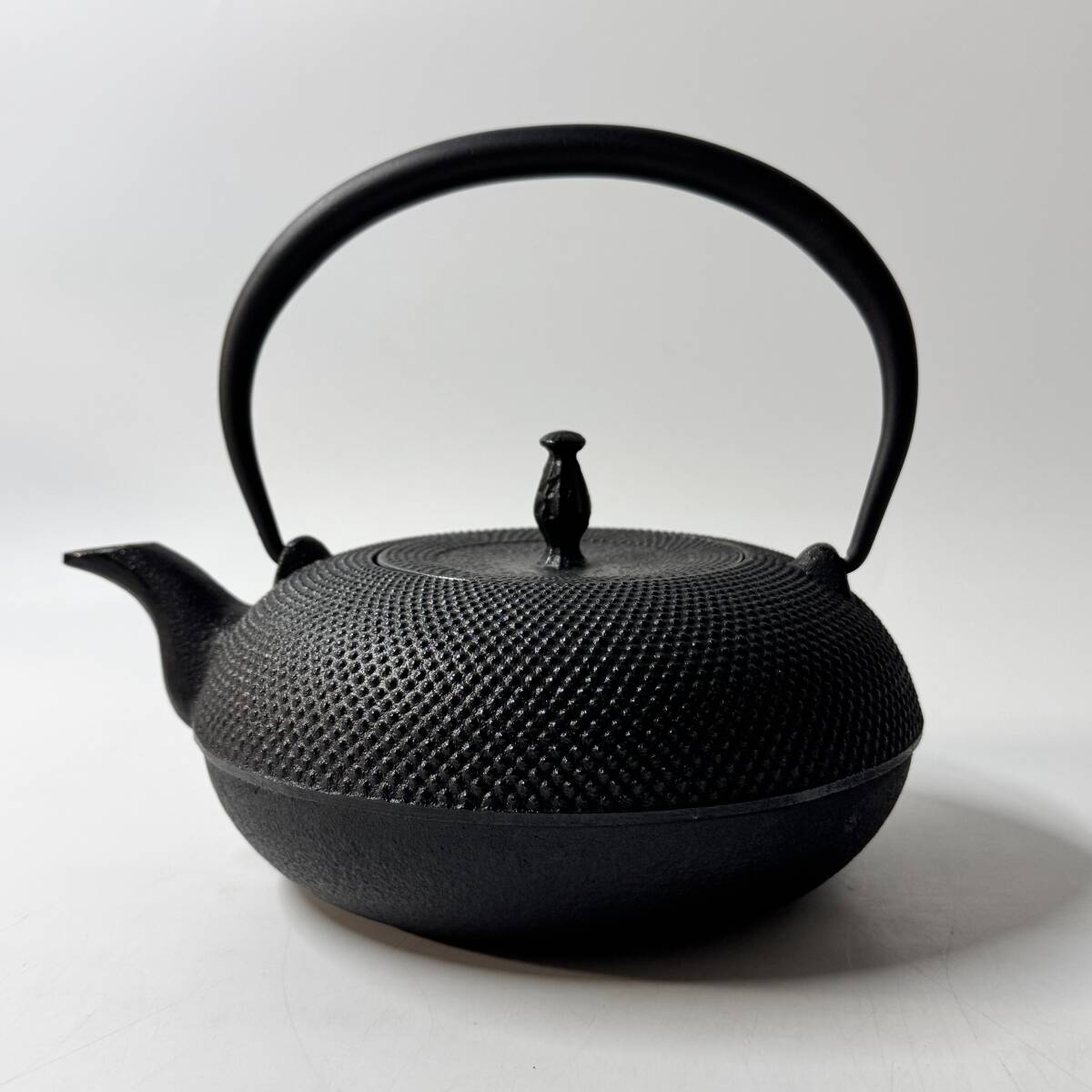 - 【63923Q】未使用 刻銘在 判読不明 鉄器 鉄瓶 あられ 湯沸 煎茶道具 鋳鉄 鋳物 茶の湯 重量1.7kg 経年保管品 現状品