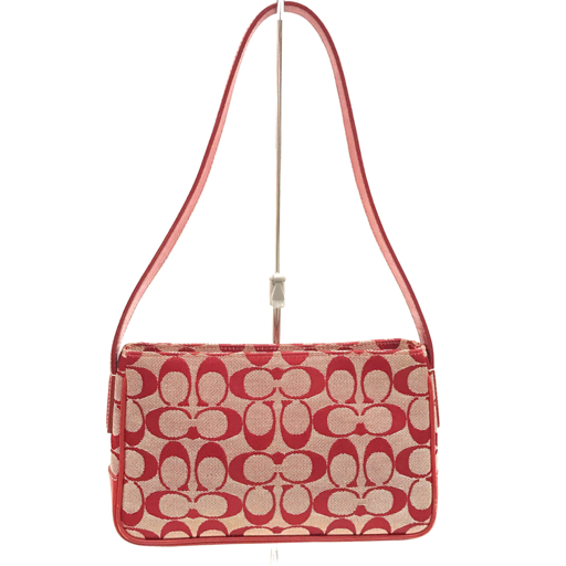 - コーチ シグネチャー ハンドバッグ ワンショルダー キャンバス × レザー レディース 赤系 レッド系 COACH