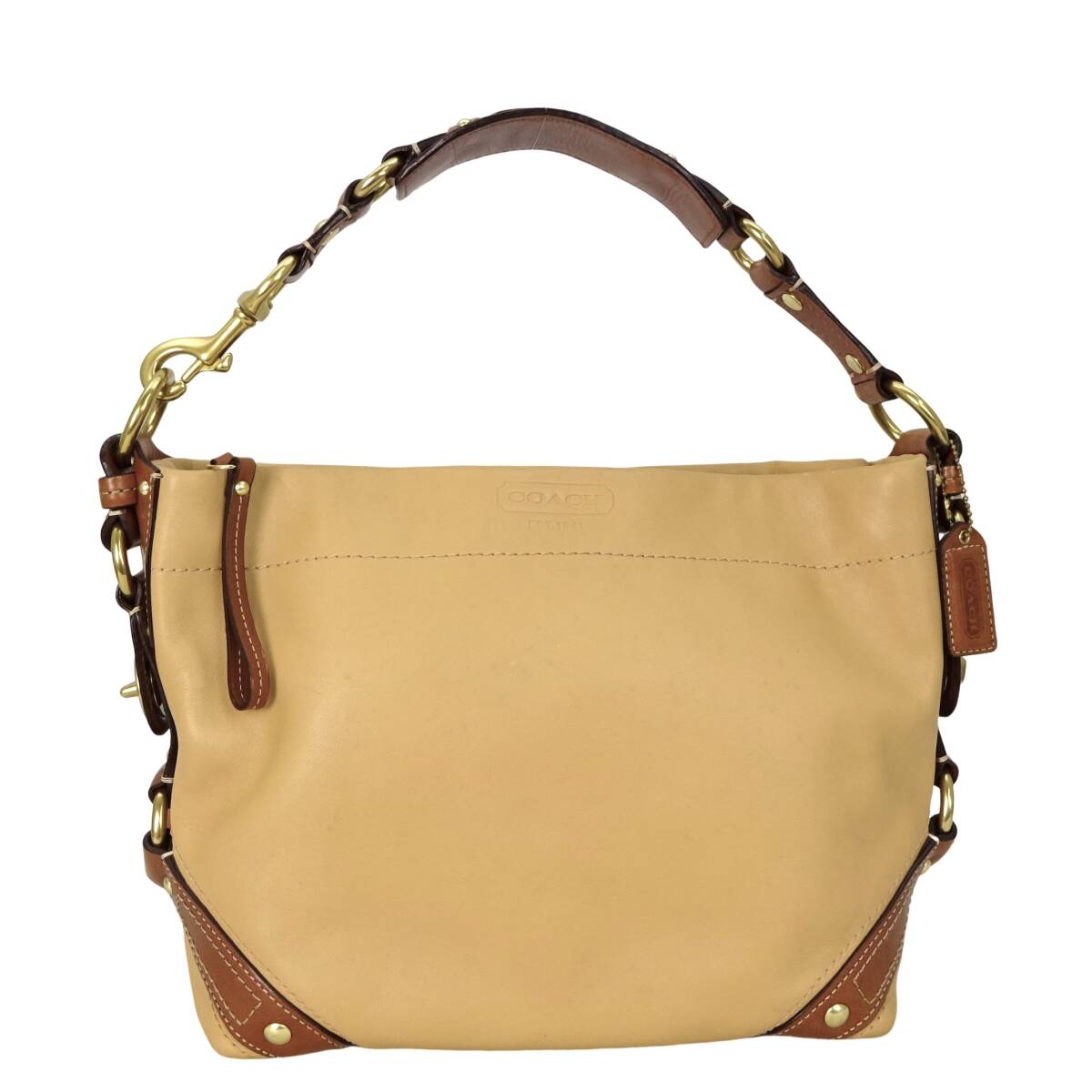 - 本物■コーチ■カーリー レザー ホーボー ベージュ ブラウン ゴールド ショルダーバッグ ハンドバッグ /918602