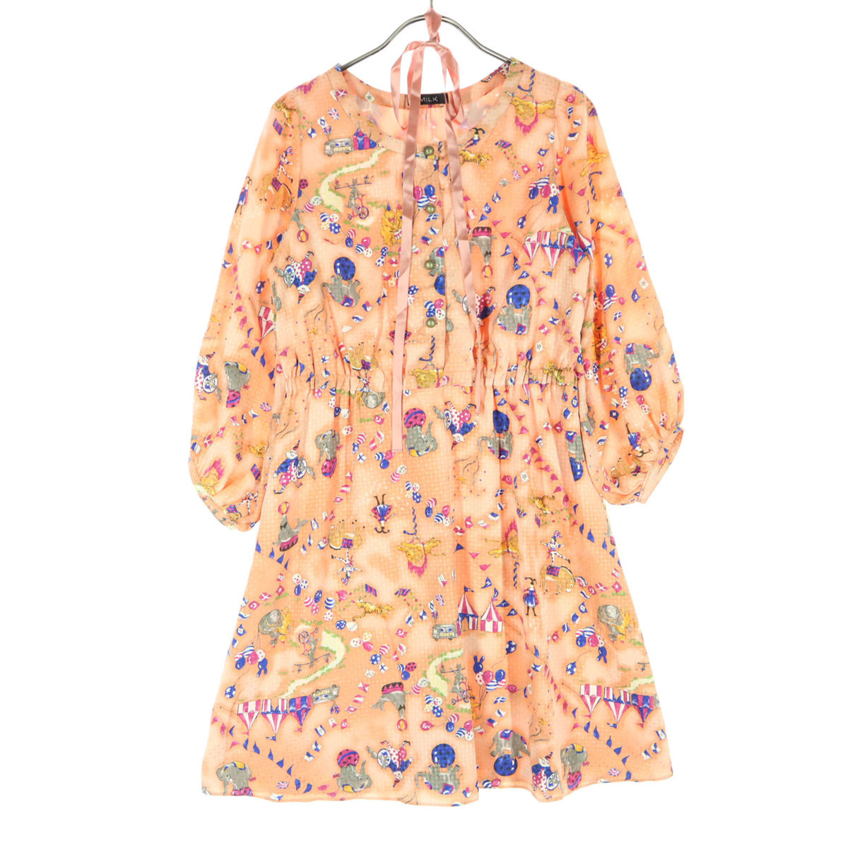 美品 MILK ミルク 日本製 サーカス柄 7分袖 膝丈ワンピース オレンジ リボン付 レディース