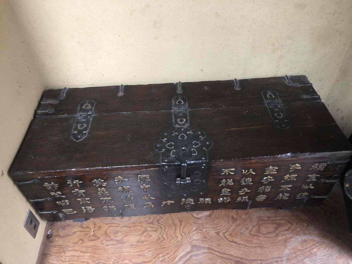- アンティーク 朝鮮 重厚な長箱 文箱 李朝家具 バンダチ()文字装飾 朝鮮箪笥 鉄金具 骨董 古民具【直接引き取り推奨】