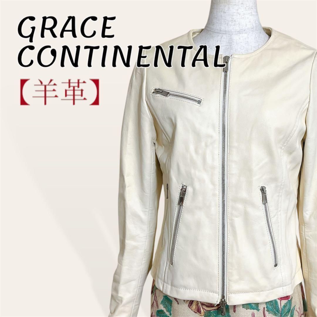 > 人気 グレースコンチネンタル 羊革 リアルラムレザー カラーレス ライダースジャケット ブルゾン アウター レディース 羽織物 36・S 4373