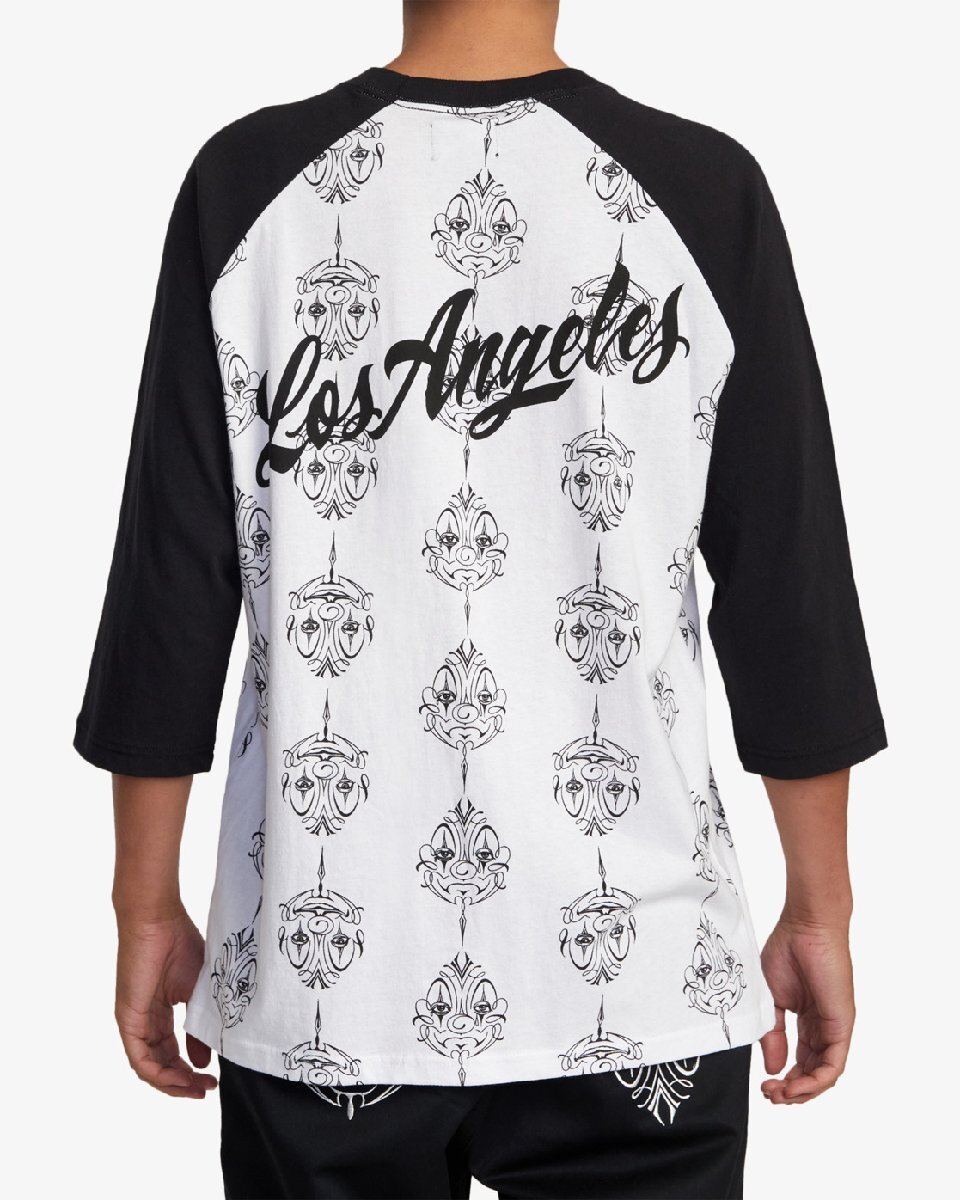 - MISTER CARTOON X RVCA SMILE NOW BASEBALL TEE WHITE M ミスターカートゥーン ルーカ スマイル クラウン ベースボールシャツ 七分袖 白 黒