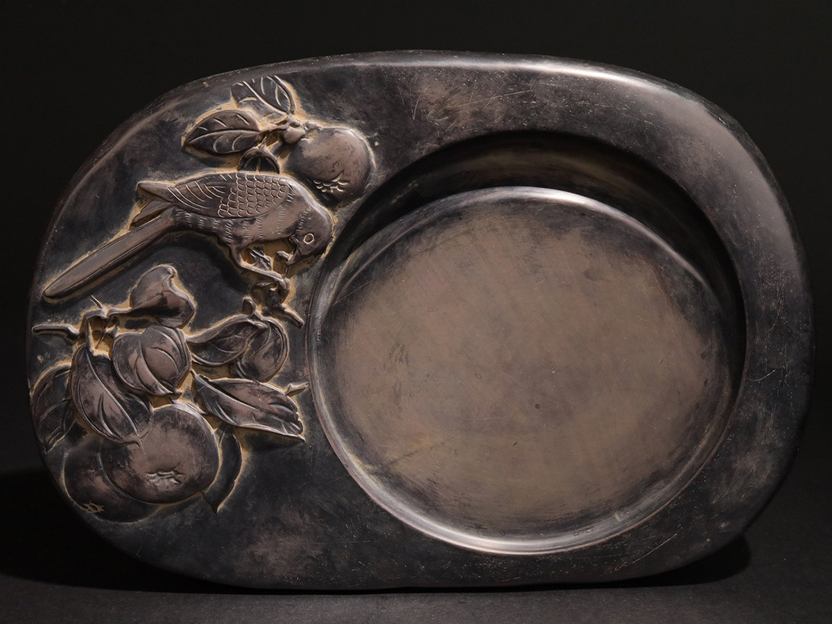 - ▽鴻▽清朝時代 老坑端硯 喜在三元紋端渓硯 王如辰銘 唐硯 墨寶 書道具 時代物 中国古美術 骨董品